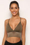 Sport bh zwart met decoratieve opengewerkte elastieken band en verstelbare bandjes.